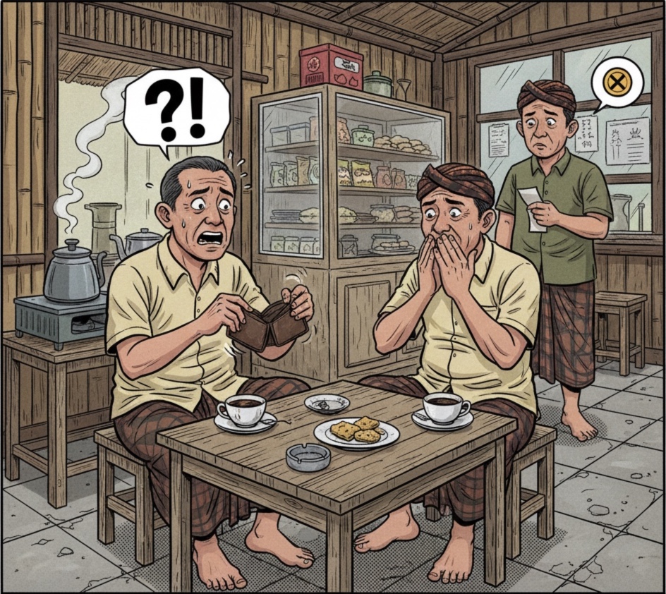 Mari kita simak percakapan di sebuah warung kopi kampung: